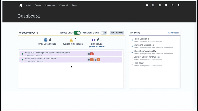 That’s where our recent update to our dashboard comes into play: Administrate now surfaces these problems in real-time to make sure there aren’t any surprises! Training coordinators can see problems that have appeared, quickly drill down to understand the specifics, and create tasks to make sure these problems are addressed if a situation can’t be rectified immediately.